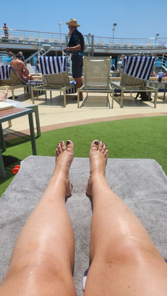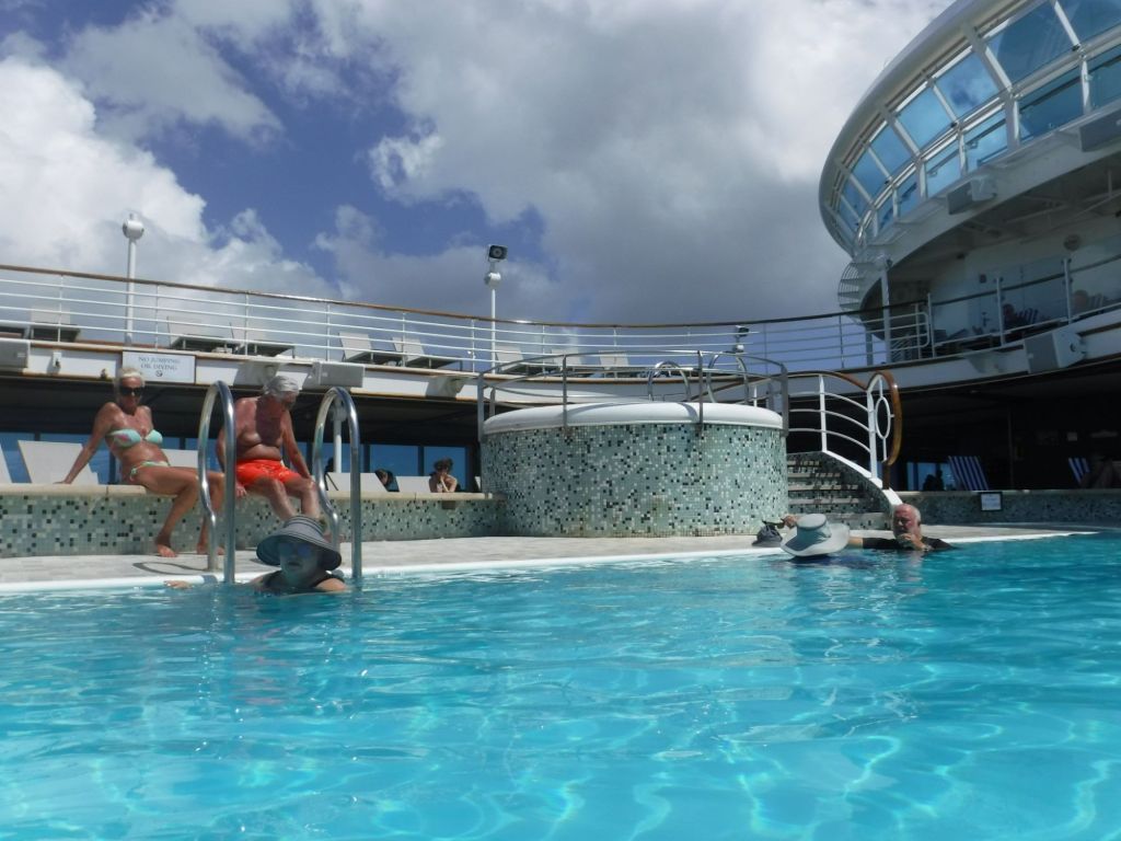 After we got back on the ship we got some lunch got a yummy snack and took a dip in the pool and I got some great pictures of the pool and the DJ.