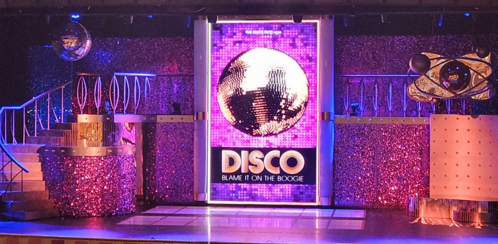 For dinner we had some yummy dishes and desserts. I got a picture of the Emerald princess birthday cake. And then we went to a cute show called Blame it on the Boogie. It was a disco theme show and that’s why I wore my disco shirt and my disco shoes.