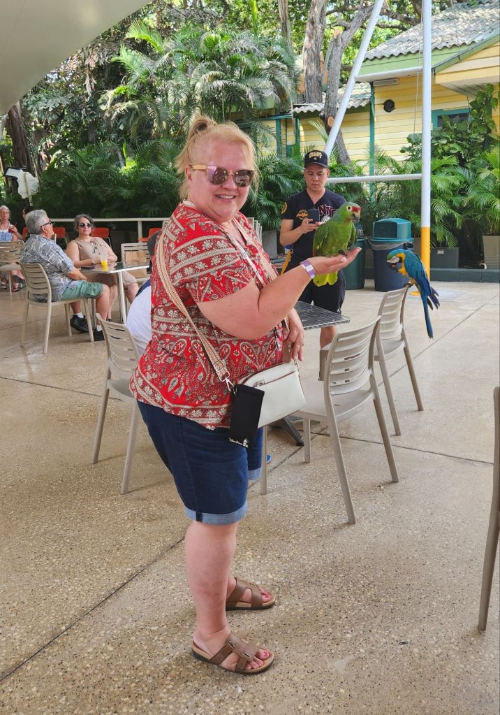 After the tour they dropped us off in the parking lot and we had to go through a bird aviary to get to the shuttle to get back to the ship. We saw a sloth, peacocks, parrots, macaws, an iguana and an anteater. All in all, it was a great day! I highly recommend getting out and seeing the sights when you cruise to a new port