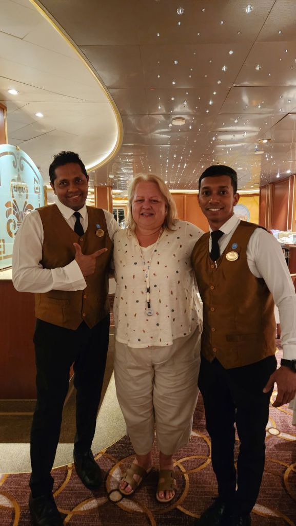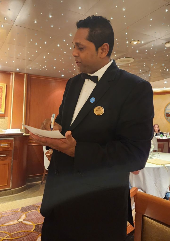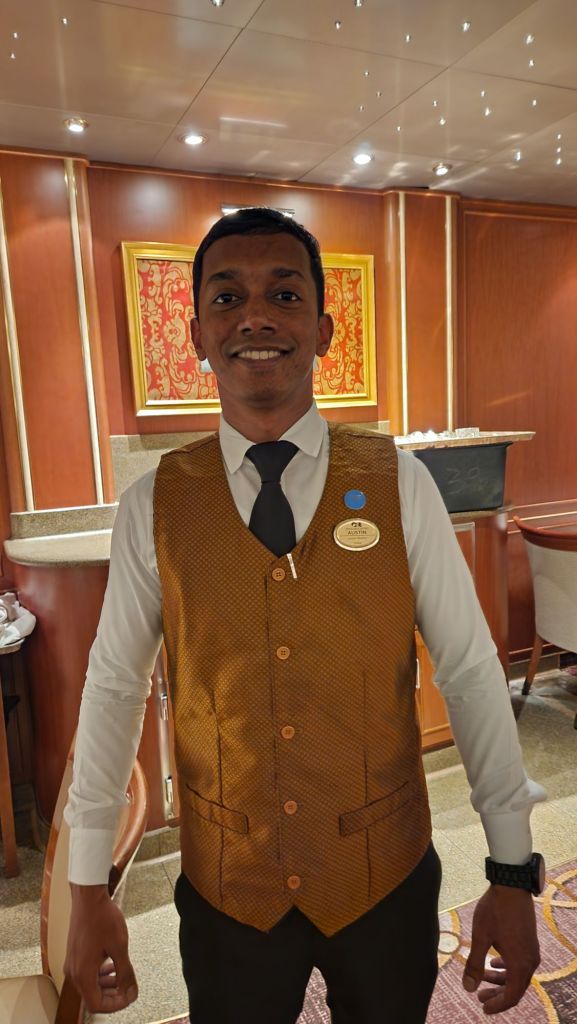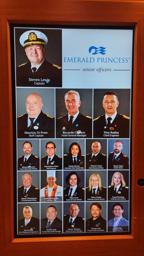 Today is our last day so I figured I would highlight the Emerald Princess and the amazing staff that we fell in love with. First I have to say the captain was amazing. I’ve never even given the captain a second thought before. But we found ourselves looking forward to his addresses each day at noon. He always told us a little bit about life on the sea and left us with a funny anecdotes.