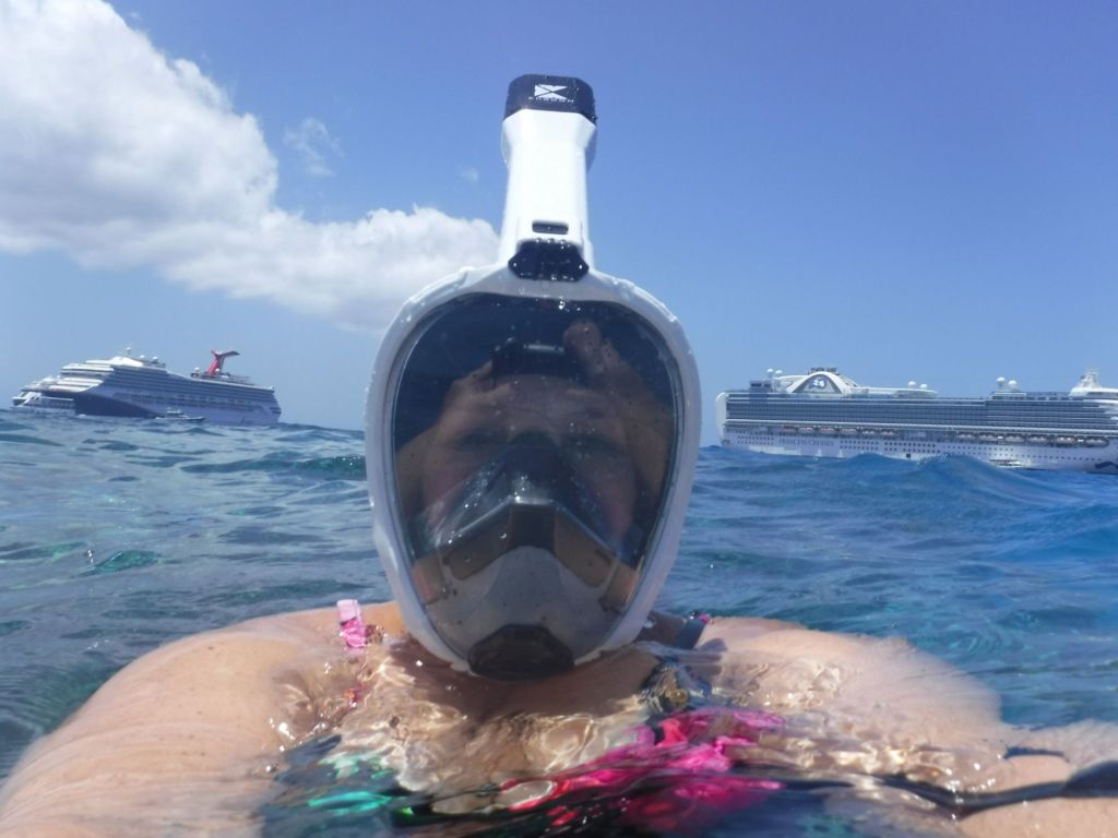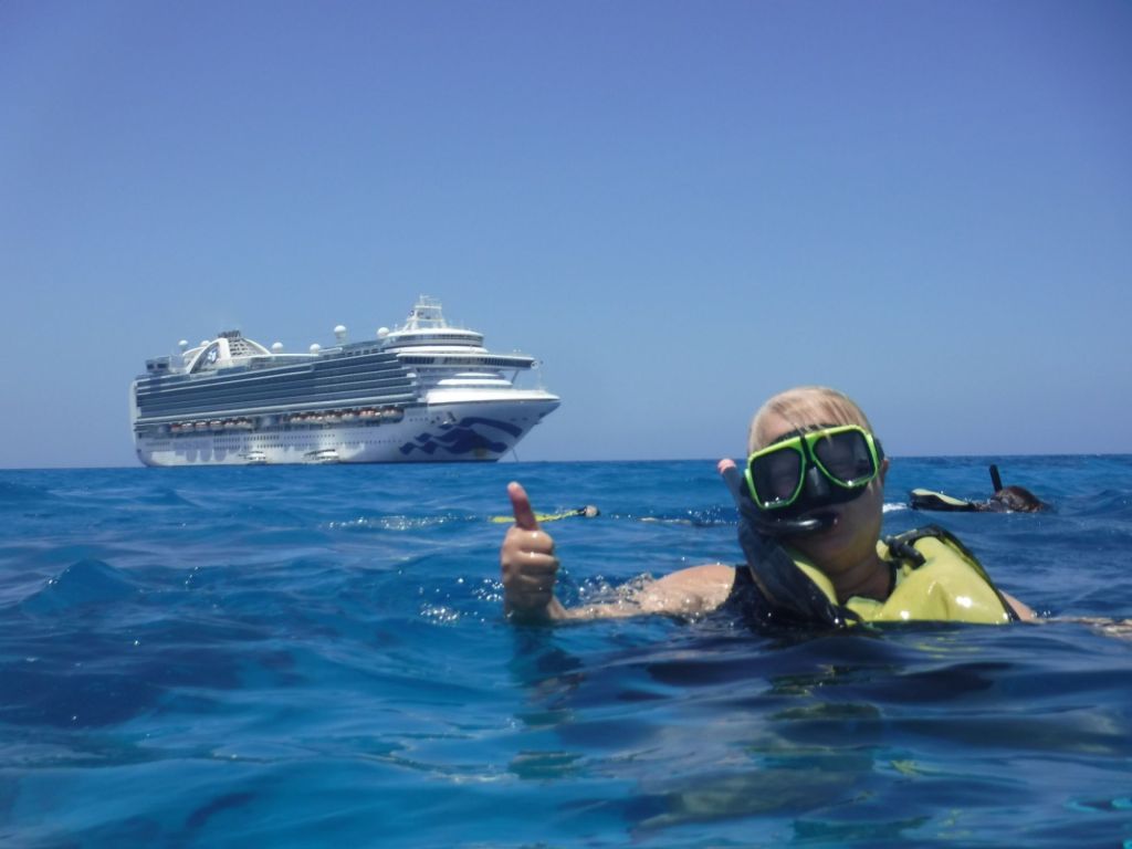 We took a water shuttle from the ship to the shore where we got to see a little bit of the town. We were walked through the main street to a dock where we got on a small boat and got to snorkel both the reef and the shipwreck of the Cali. I got to use my new face mask and I absolutely loved it. It was pretty cool getting to snorkel and breathe out your nose.