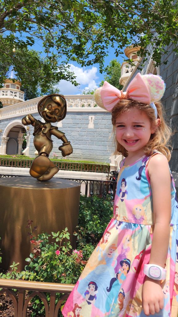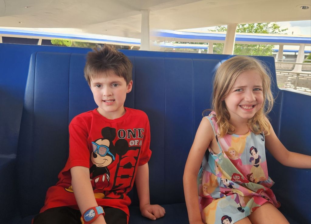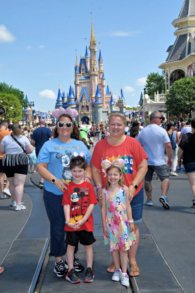 Excitement filled the air as we entered Magic Kingdom, Elle and Jackson’s eyes wide with anticipation! Before us stood Cinderella Castle, a majestic symbol of the enchantment that awaited within. To our left, Adventureland beckoned with its promise of thrilling escapades, and to the right was the wonder and excitement of Tomorrowland. We chose directly ahead where the bustling streets of Fantasyland welcomed us with open arms.