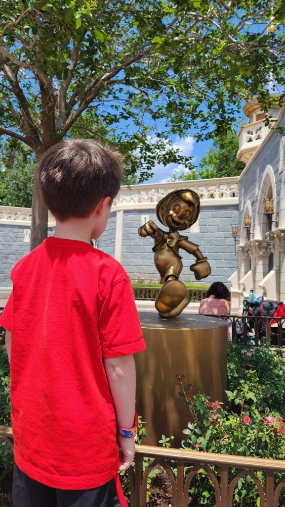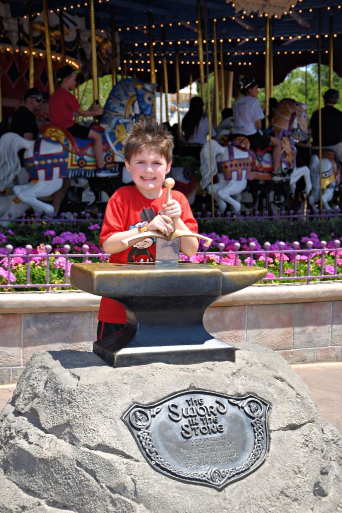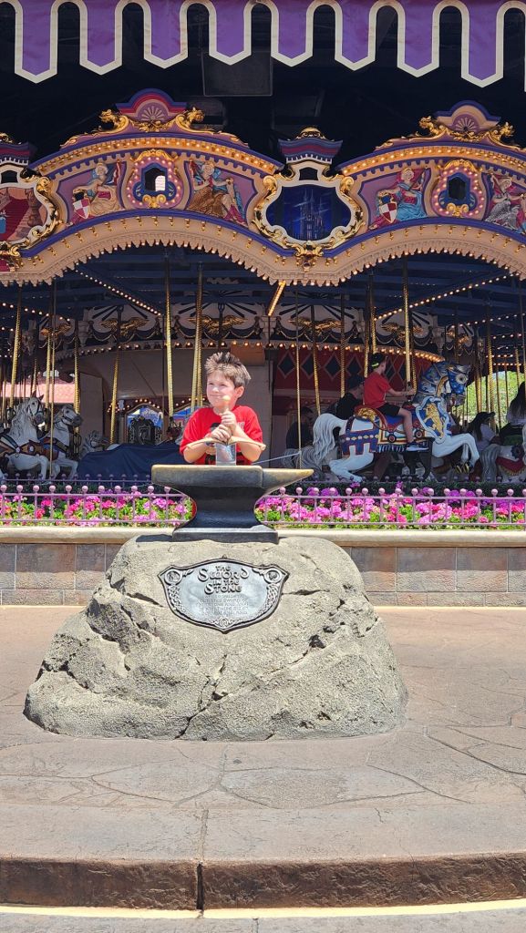 In Fantasyland we immersed ourselves in the wonders of classic Disney tales. From flying with Peter Pan to journeying through the Enchanted Forest with Snow White and the seven dwarfs mine train, every moment was filled with wonder and delight. We ventured deeper into this magical realm, we marveled at the vibrant sights and sounds that surrounded us as we rode through the Winnie the Pooh blistery day and voted around a small world. Alan Jackson age took a turn to try to pull the magical sword with no luck. We also got to hear an enchanting tale with Bell and Lumiere.