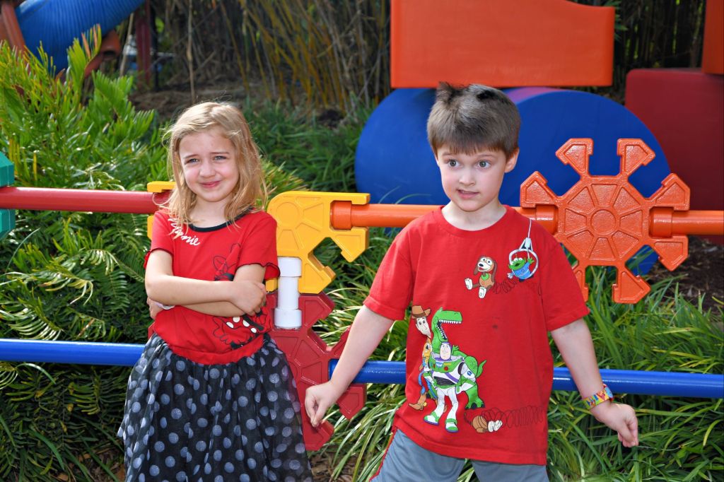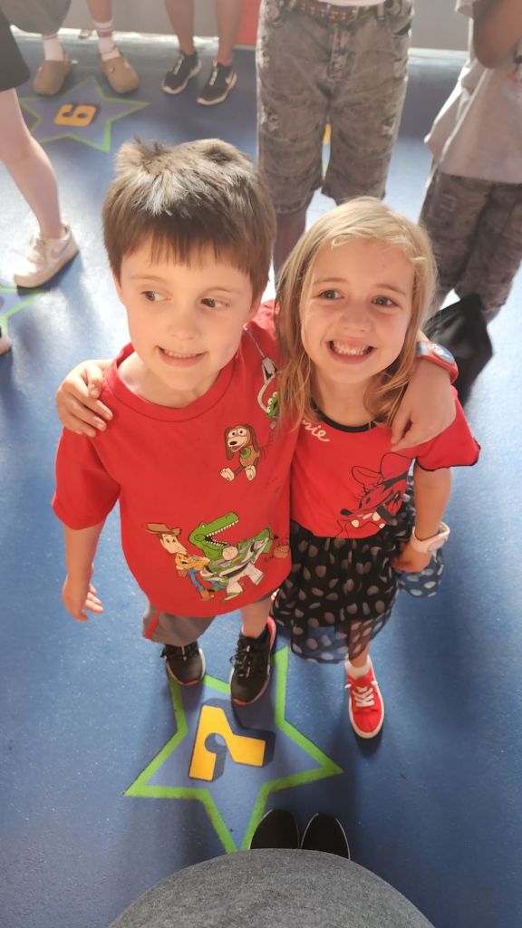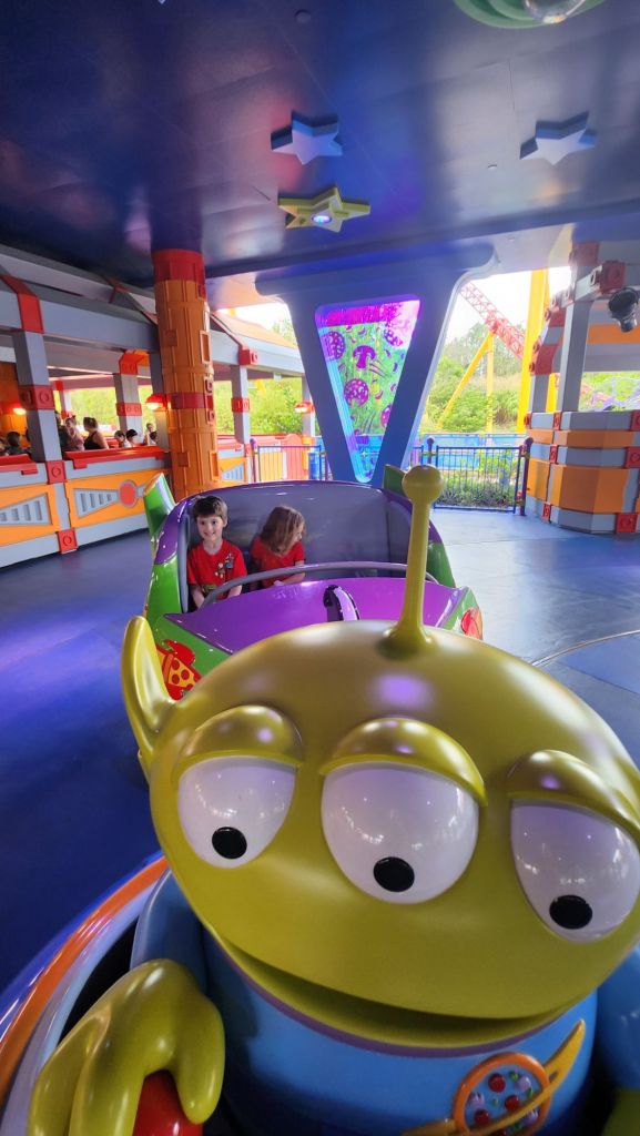 Their first stop? Mickey and Minnie’s running muck picnic. This was a favorite for both for sure. We definitely wrote this one twice. Next up, Toy Story Land! With oversized toys and vibrant colors, this whimsical land transported them to Andy’s backyard. From the thrilling twists and turns of the Slinky Dog Dash to the dizzying heights of Jessie’s Critter Carousel, Jackson and Elle giggled with delight as they experienced the magic of their favorite toys coming to life.