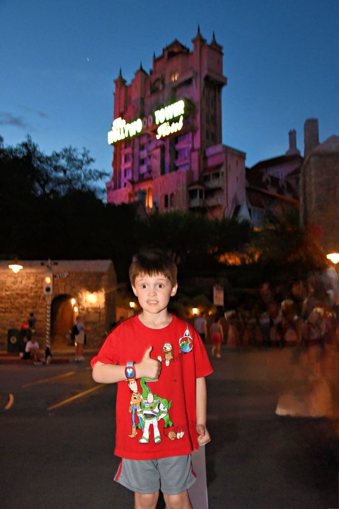 Their day wouldn’t be complete without a visit to the iconic Hollywood Tower Hotel. With nervous excitement, they stepped into the haunted elevator, holding hands tightly as they plummeted into the Twilight Zone. Screams turned to laughter as they emerged unscathed, ready for their next thrilling escapade. Upon leaving the tower we found a photographer that spent a good 5 minutes with the kids hearing all about the tails of their daring escape of the tower. She took picture after picture with every pose they asked for.