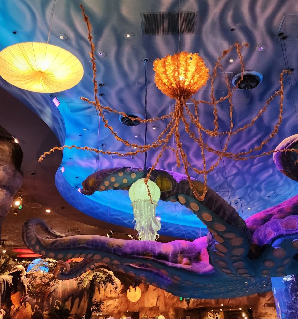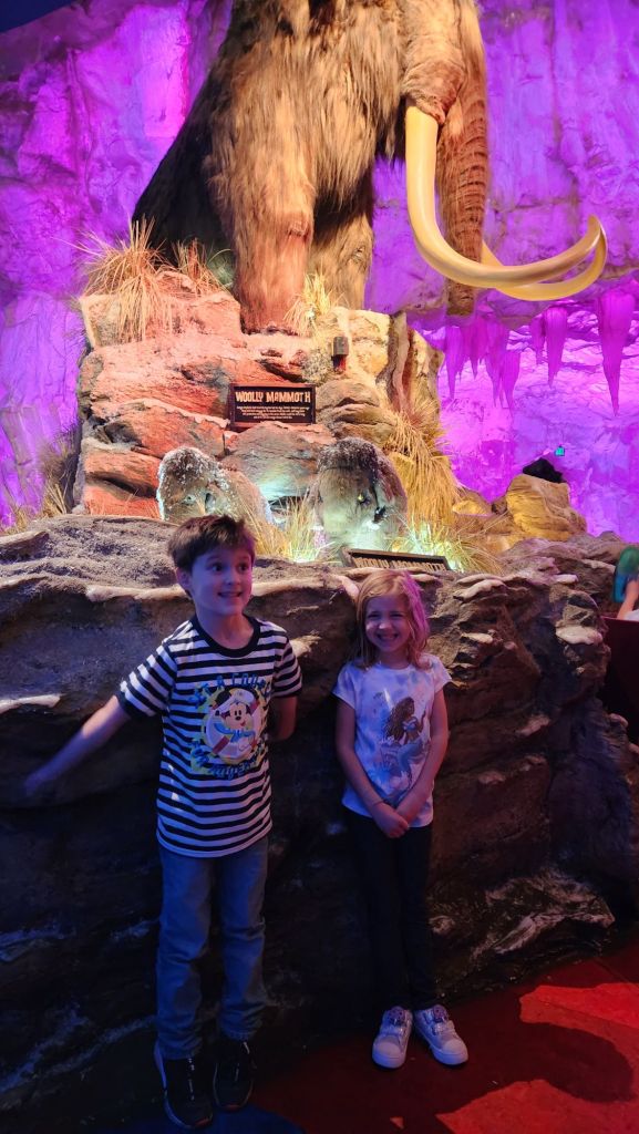 Next we went to T-Rex to get eaten by dinosaurs oops I mean eat with the dinosaurs. Both kids were super amazed by the dinosaurs. After we ordered we took a tour and got to see all of the critters. All this excitement and we haven’t been to a park yet.