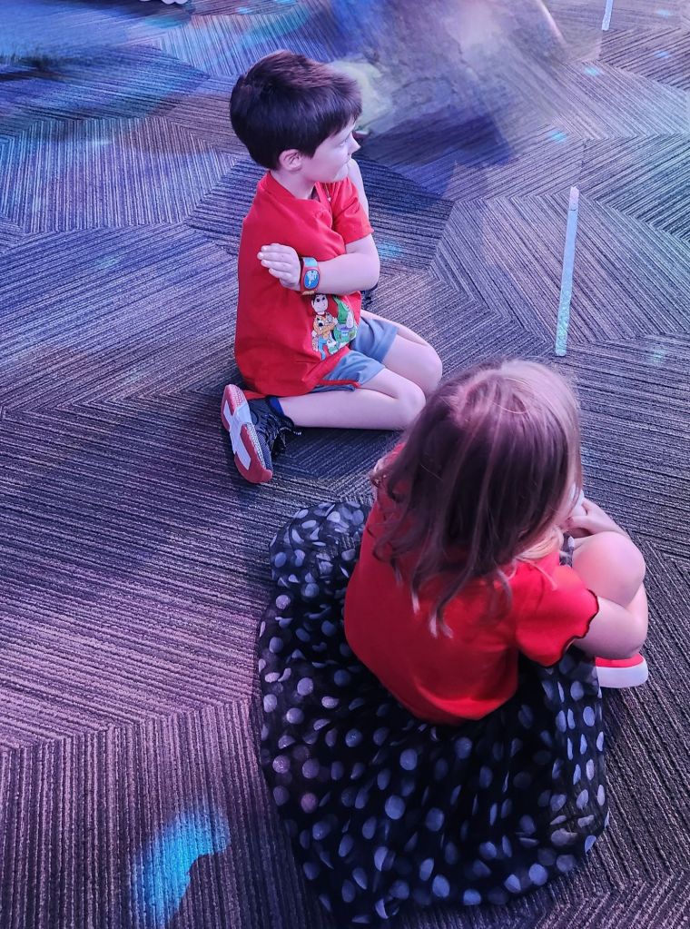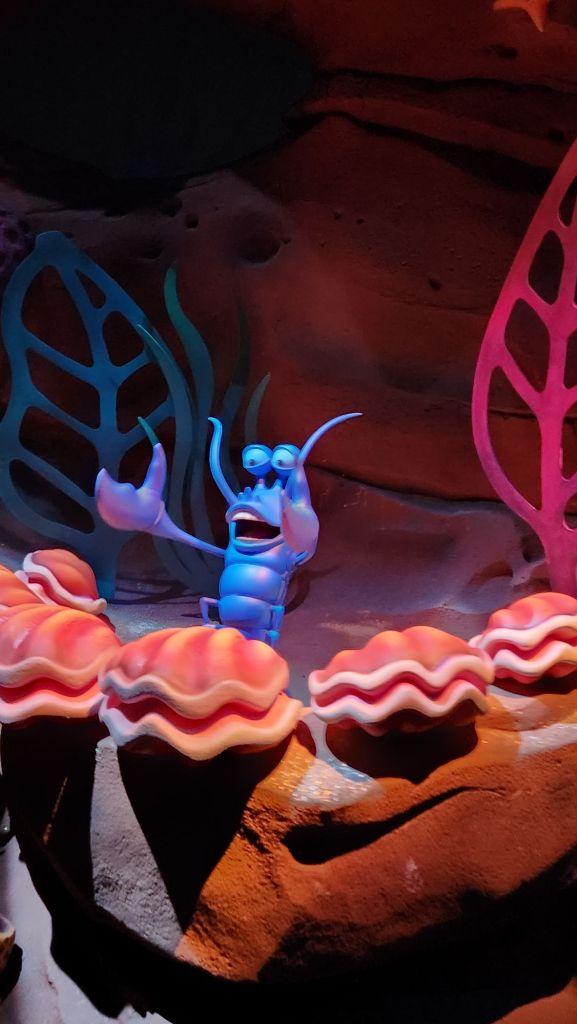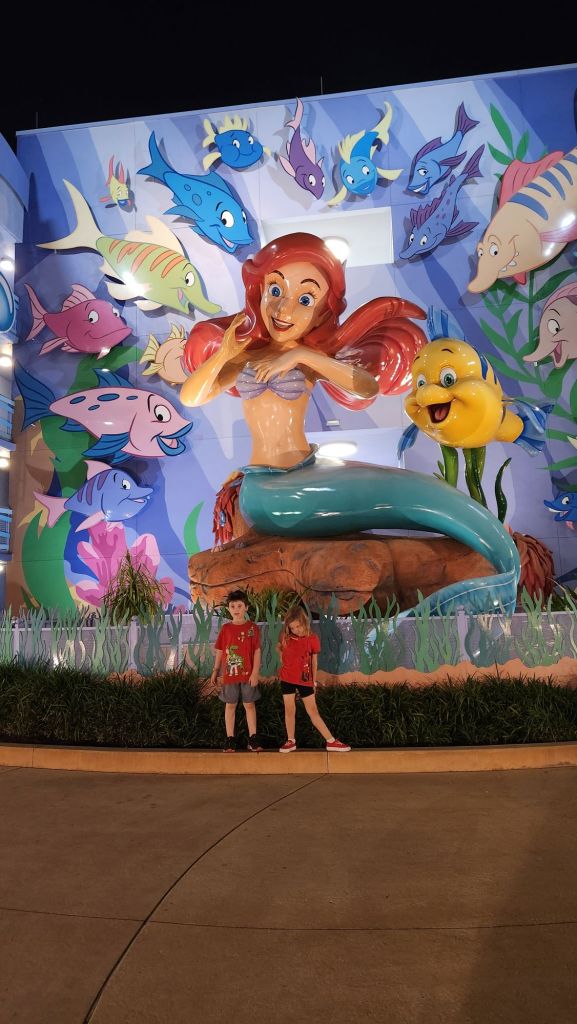 We left Hollywood studios and rode the sky buckets to Art of Animation. There we got to see the Little mermaid section and The Lion King section and they got to play on the finding Nemo of play area. This was a request from Jackson. He just had to show it to Elle.
