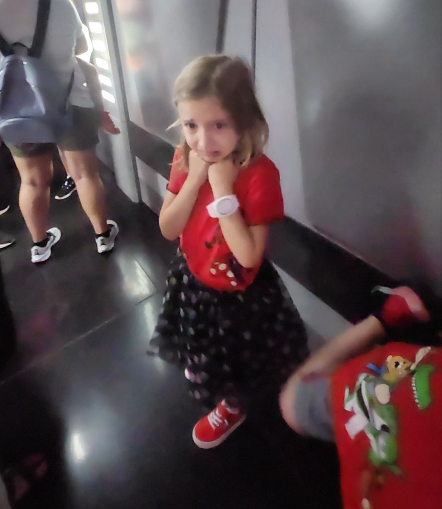With their decision made, they headed to Star Wars: Galaxy’s Edge, where they joined the Resistance in battling the First Order on Millennium Falcon: Smugglers Run. With Jackson as the gunner and Elle as the daring pilot, they navigated the galaxy with skill and bravery, saving the day in epic fashion! Next up rise of the Resistance. Here they escaped the wrath of the first order. It was super concerned about going to jail but Jackson reassured her everything would be okay.